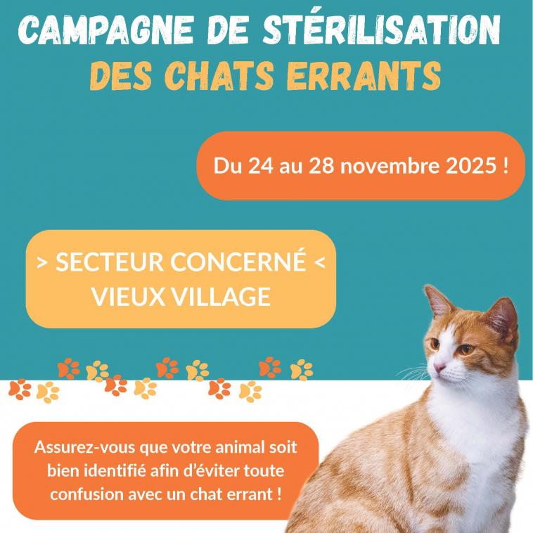 Une campagne de stérilisation pour les chats errants va être effectuée par la Fondation Clara du 24 au 28 novembre 2025...