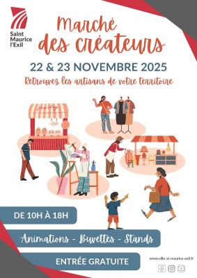 Le Marché des créateurs de Saint-Maurice l'Exil revient pour sa 5ème édition le samedi 22 et dimanche 23 novembre, de 10h à 18h, à la salle Louis Aragon avec toujours plus de nouveautés pour 2025 !